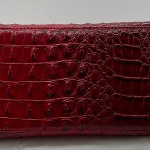 Gorgeous deep red croc embossed bag, cool vegan leather covered handles, bright gold toned hardware, interior is perfect. NWOT.