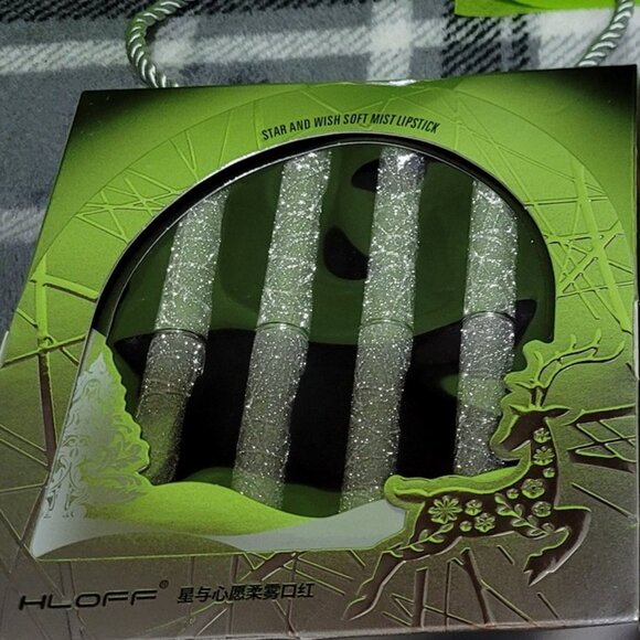 SSS-NIB Silver Sparkle 4 Red Lipstick Sticks With Cover-In Gift Box