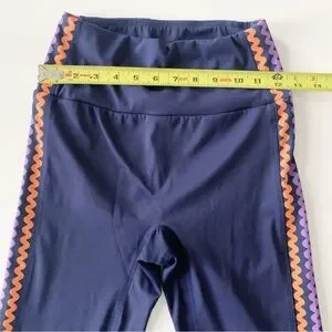 Navy leggings with colorful ric rac design. No front seam!