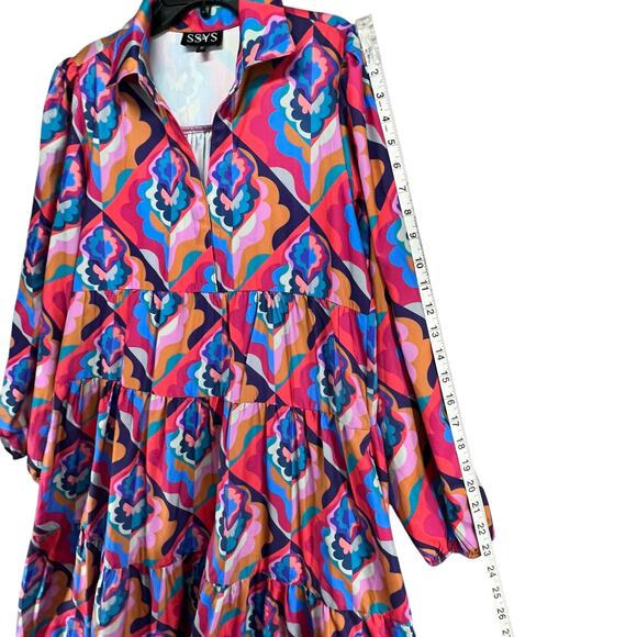 SSYS The Label Midi Dress S Multicolor Abstract High Waist Tier Colorful Resort