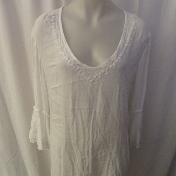 ST. BARTHS WHITE 3/4 SLEEVE BOHEMIAN TUNIC SZ S/M