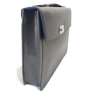 This is a small compact handmade luxury briefcase design for business and formal activities, it is made out of exquisite black leather on the outside and an elegant blue microfiber lined interior on the inside, giving it a modern look.