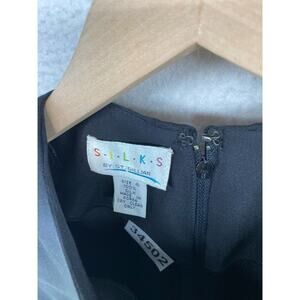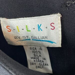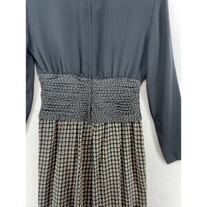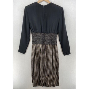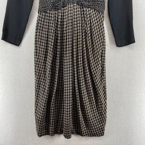 ST. GILLIAN SILKS Dress 4 Sheath Midi Printed Draped Long Sleeve Black Vintage