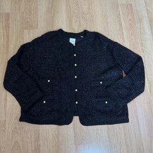 ST. JOHN $1895 Metallic Black Sparkly Gold Button Loop Closure Jacket XL NWT