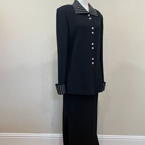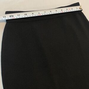 Understated luxury: ST. JOHN Basics skirt. Black, long maxi skirt. Women's size 4. Vanity sizing; may fit 6-8. See measurements in photos to estimate fit. Wide, comfortable elastic waist; nice stretch. Tasteful, long, elegant side slit. No fabric tag: probably "Santana" fabric blend of 80% wool, 20% rayon. Feels lux, substantial. Clean lines, refined details, timeless design, tailored silhouette. Sophisticated & elegant. Refined extravagance. High quality luxury knitwear. **Looks great paired with my other St. John Evening listing: Formal embellished blazer.**