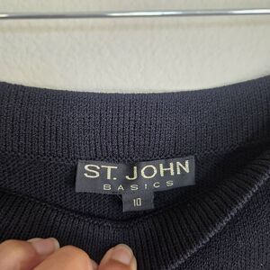 ST. JOHN BASICS Black Santana Knit Straight Leg Pants Size Women's 10 Pull On Made in the USA Vintage. Pants Have Flaws, some pulls and some holes towards the back lower leg shown in photos. Please see photos for approximate measurements.
