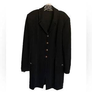 ST JOHN BASICS SANTANA KNIT LONG LINE GOLD BUTTON BLACK BLAZER