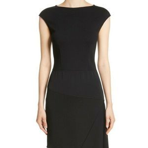 ST JOHN BLACK LABEL 2018 Caviar Milano Knit Bateau Asymmetric wool blend sleeveless Dress. Retails $995