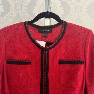 ST. JOHN Red & Black Knit Jacket w/ Hook Front
