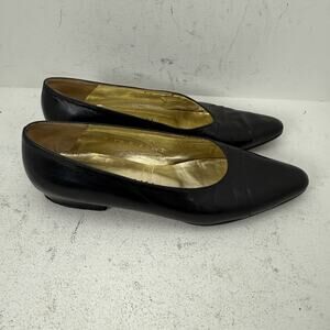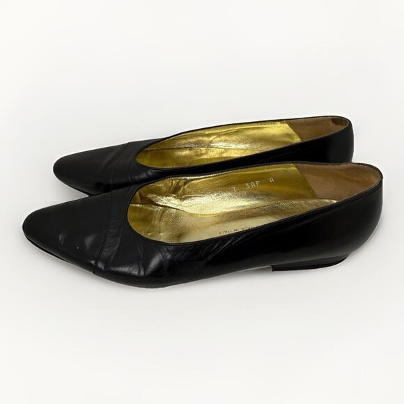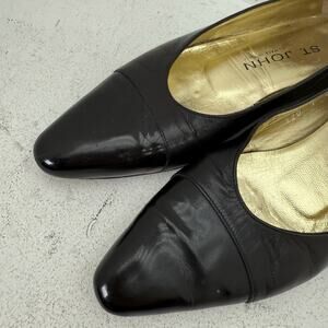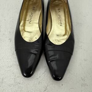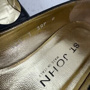 ST JOHN Black Leather Patent Toe Flat Low Heel Shoes Women's Size 7 AAA
