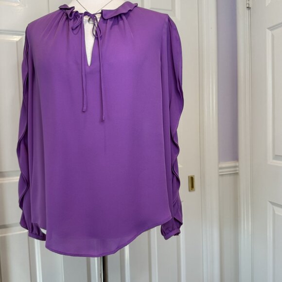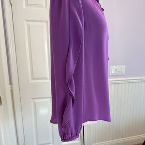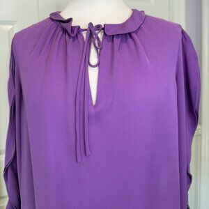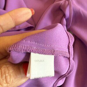 St. John Collection Ruffle Silk Crepe Blouse stretch silk dard orchid or lilac. Perfect for Office, Church, etc. No Tag, but never worth.