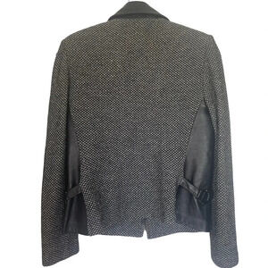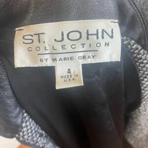 ST JOHN COLLECTION BY MARIE GRAY Tweed Jacket with leather collar and detail. Slight wear in pit as shown in photo.