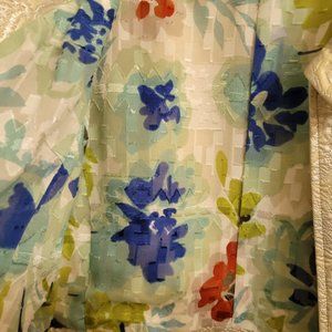 Beautiful St John Silk Floral print gold and silver suit size 6, in excellent condition.