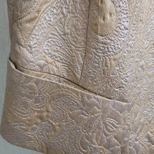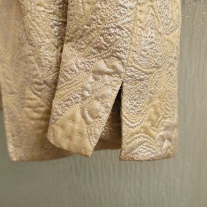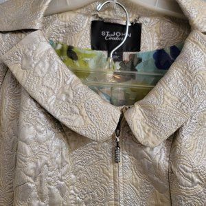 ST JOHN COUTURE FLORAL SILVER AND GOLD SILK BROCADE SUIT