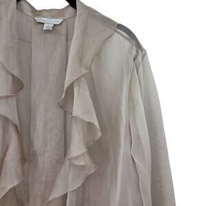 ST JOHN COUTURE SZ 16 SILK IRIDESCENT OPEN FRONT RUFFLE LONG SLEEVE CARDIGAN