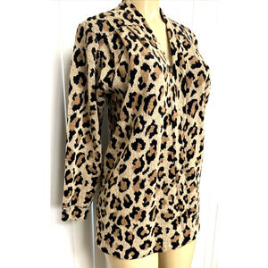 ST JOHN Cardigan Open Sweater Animal Print Brown Beige Leo Vintage S P