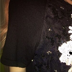 Matching jacket is size medium with short sleeves and the matching hand beading, lace and sequins - some gently worn places on knit barely visible