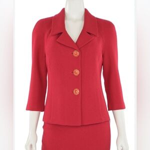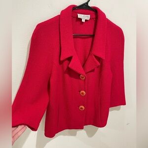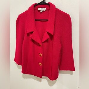 ST JOHN Collection Jacket Knit Red Sweater Blazer Size 8 Medallion Buttons