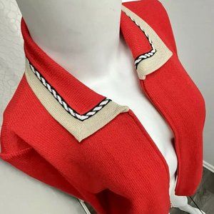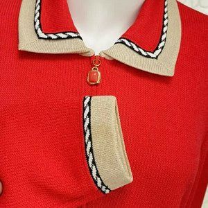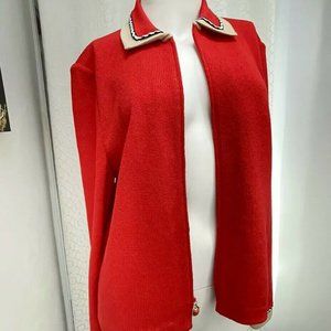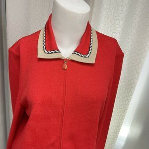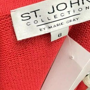 ST JOHN Collection Jacket Sz 6 Red Beige Zip Santana Knit