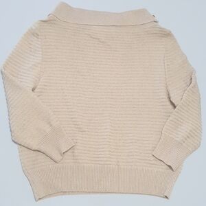 Features: long sleeves, ribbed, round neck woth gold button details, gold thread,