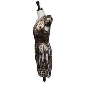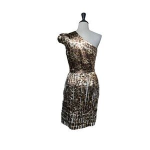 ST. JOHN Couture NWT Leopard Print One Shoulder Metallic Cocktail Dress Size 6