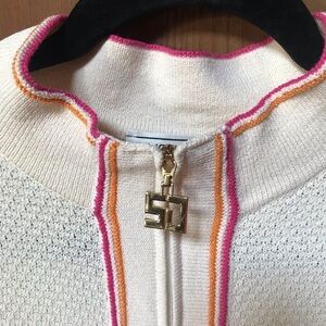 ST JOHN Sport by Marie GrayCrochet Knit Full Zip Jacket. White w/ pink & orange trim.