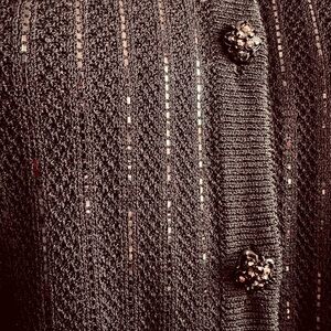 Rare find NWT Vintage 2002 St John Evening Collection by Marie Gray sparkling evening dress. Satin collar, belt and cuffs. Dramatic multidimensional buttons. Stunning jeweled belt buckle! Great statement dress for a business event or any glamorous special occasion. This dress is in excellent new condition with the exception of some minor breakdown/cracking on the inside of the belt (this is common for vintage and not obvious from the outside). Comes with a zip up monogrammed storage bag.