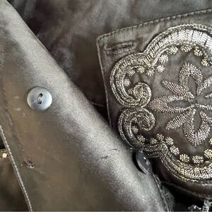 St. John Evening wear, gorgeous sequined and embellished detail on satin pants. Great pre-owned condition, Some minor flaws if you look closely.