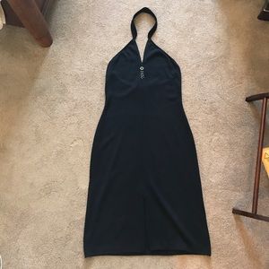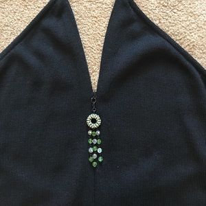 Perfect Condition. Only worn 1x. Selling it for my Mother-in-law. Unique styled collar halter and zipper that can be unzipped from bottom and top of dress. Top zipper with green beads. Flattering fit to the body.