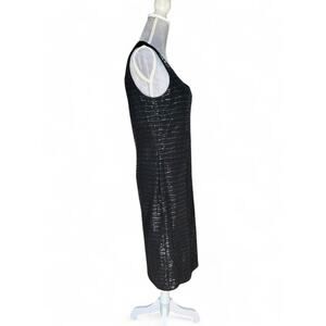 Keywords: St John Marie Gray Evening dress, St John sheath dress, black metallic cocktail dress, formal designer dress, knit shimmer dress, St John size 6, luxury eveningwear