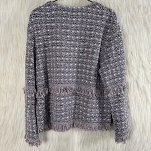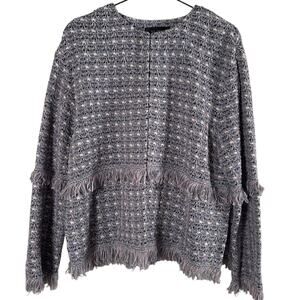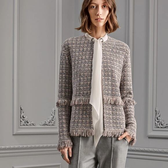 ST. JOHN Fall 2017 Ready-to-Wear Jacket Wool Blend Gray Fringed Open Size 10