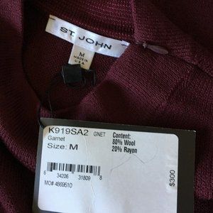 ST JOHN GARNET BURGUNDY KNIT TOP SIZE M 10 12 NEW