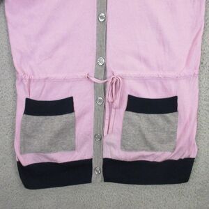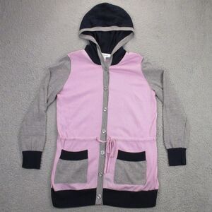 ST. JOHN Hoodie Cardigan Sweater Womens size Medium Wool Color Block Pink