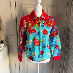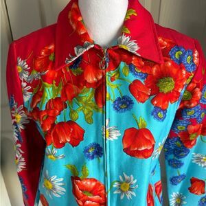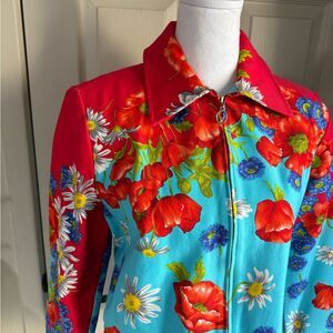 ST JOHN Jacket Poppy Daisy Floral Vibrant Color Spring Artsy Jacket Size (P)