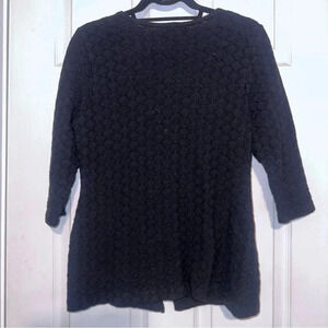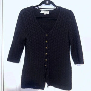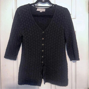 ST JOHN KNIT Black Gold Button Sweater Cardigan 3/4 Sleeve women’s 10
