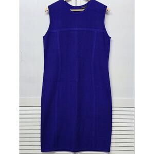 ST JOHN KNIT SIZE LARGE 14/16 ROYAL BLUE WAFFLE KNIT SHEATH DRESS MIDI