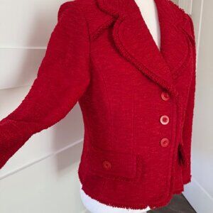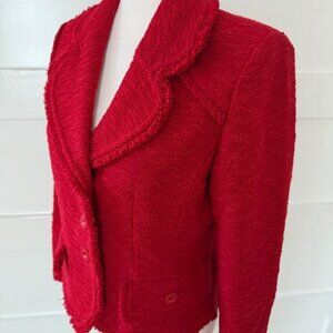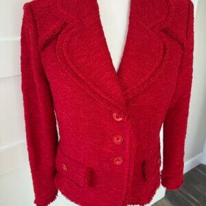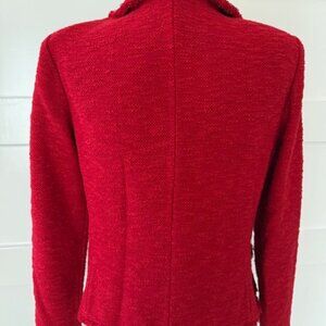ST. JOHN Lipstick Red Tweed Fringe Trim Suit Blazer Jacket Size 6 Women's
