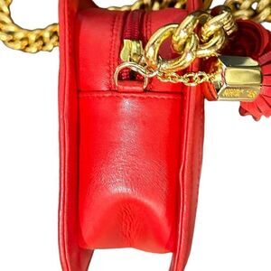 ST. JOHN Red Quilted Luxury Lamb Leather Gold Chain Strap Purse Bag NWOT