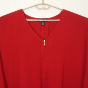 ST. JOHN Red Wool Blend V-Neck Poncho Cocoon Zip-Up Cardigan Sweater Size M/L