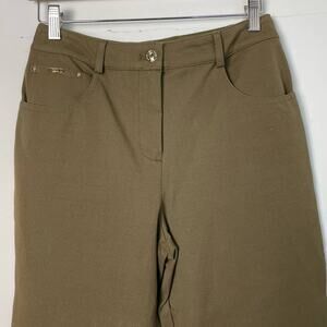 St. John Sport by Marie Gray brown taupe stretchy high-rise jean pants in size 4. These pants are made from a comfortable and durable blend of 96% cotton and 4% spandex, offering a flexible and flattering fit.