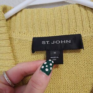 ST JOHN Santana Knit Snap Button Cardigan Jacket Yellow Size M