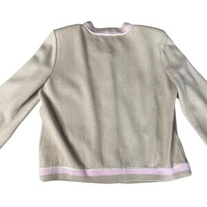 ST JOHN Santana Preppy Classic Knit Sweater Tan Pink Button Up 8 Medium