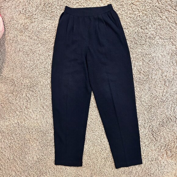 ST JOHN Separates Black Santana Knit Pleated Pants Size 6 Taper Leg Pull On