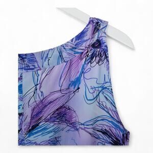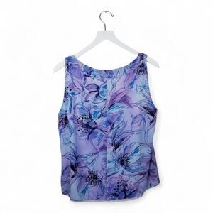 ST. JOHN Silk Blouse Scoop Neck Abstract Floral Sleeveless. Fully in lined.