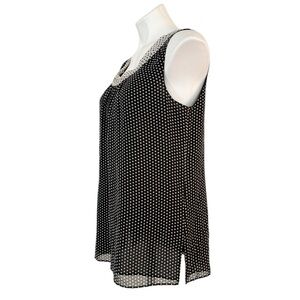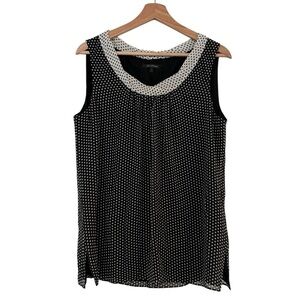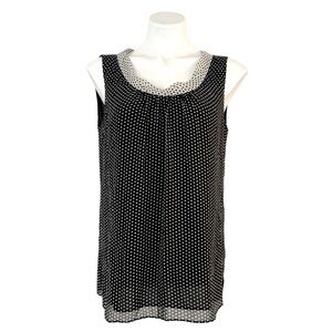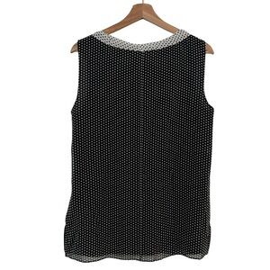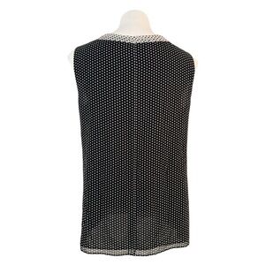 ST. JOHN Silk Polka Dot Black & White Sleeveless Semi Sheer Blouse Size S
