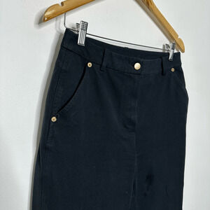 ST. JOHN Sport Straight Leg Button Accent Pants Black Stretch Womens 6