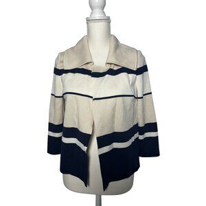 ST JOHN Striped Draped Cream Navy Sweater Jacket Size 4