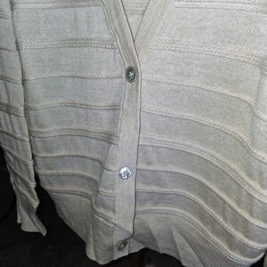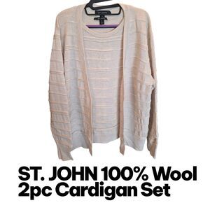 ST. JOHN Sz XL TAN Oatmeal 2 Pc 100% Wool Vest & Button Up Cardigan Sweater Set