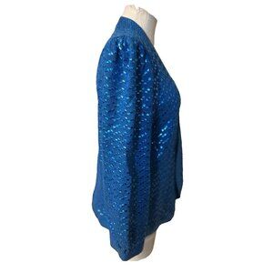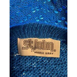 ST JOHN VINTAGE Sequin Jacket L 80's Blue Wedding Formal Party Cruise Holiday