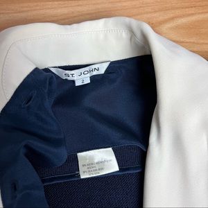 ST JOHN Vintage Signature Knit Navy Jacket with removable white collar size 2